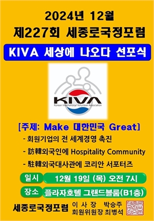 세종로국정포럼 2024년 12월 연말정기 조찬모임에서 KIVA한국국제자원봉사회 선포식이 열렸다.