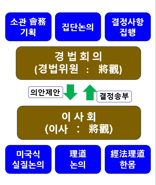③이사회에서의 논의 의안은 가급적 경법회의에서 심의되고 의결되어야 한다.