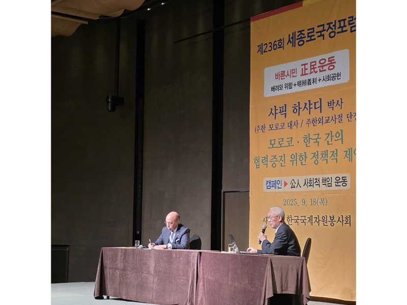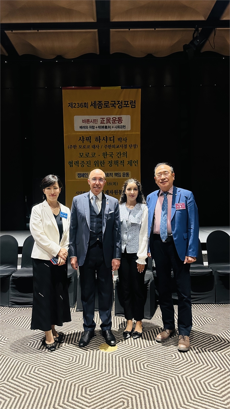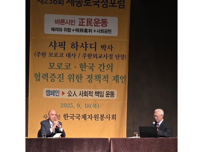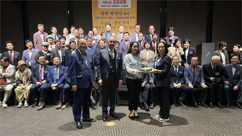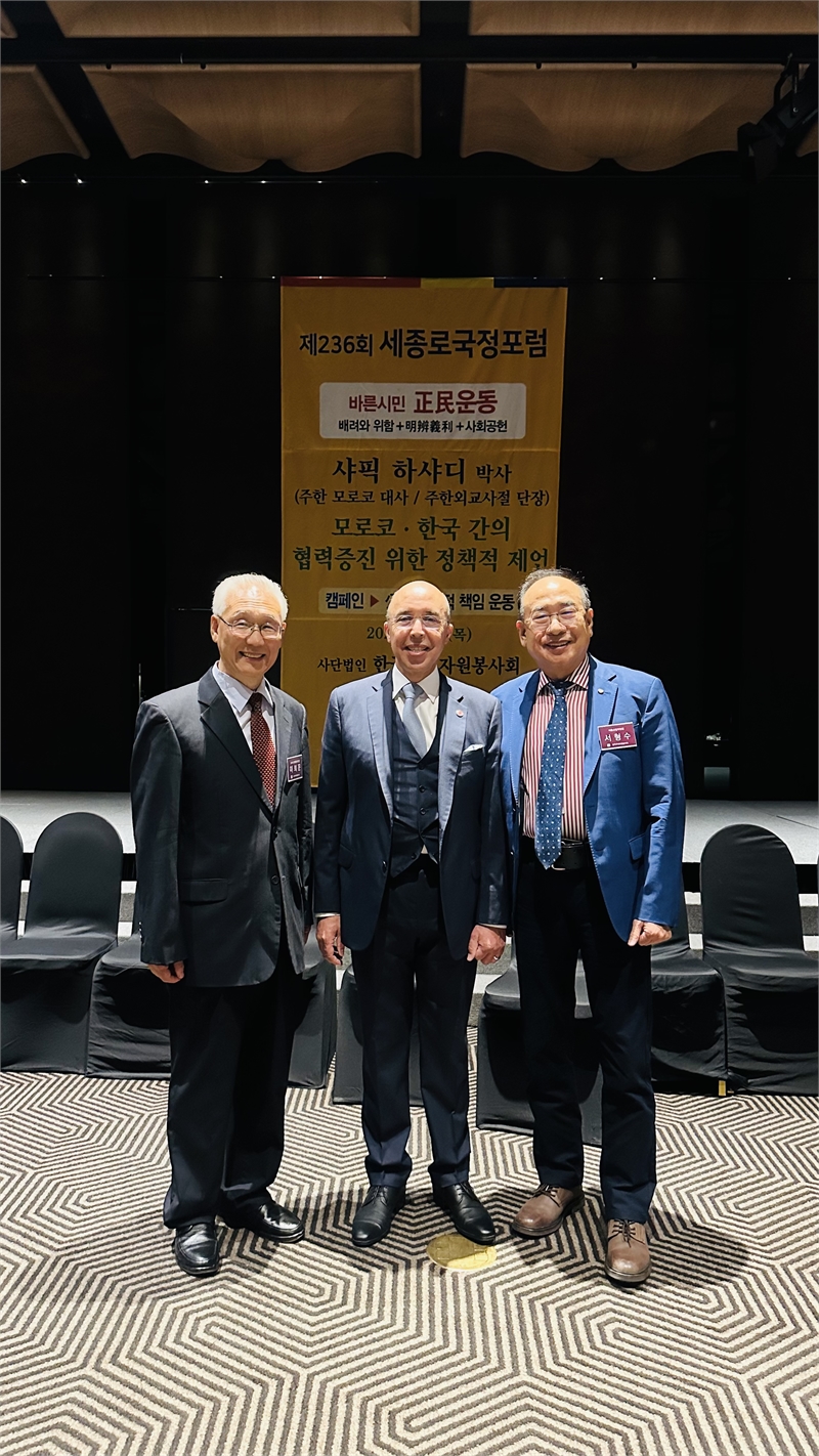 국정포럼 샤픽 하샤디 박사 (주한 모로코 대사) 외교특강 (제236회 세종로국정포럼 ) 2025년 9월 18일 더플라자 그랜드볼룸 KIVA 조찬 강연 DESK 승인 2025.09.19 10:08 | 최종 수정 2025.11.01 15:11 0 제236회 세종로국정포럼 초청연사 샤픽 하샤디 박사 (주한 모로코 대사) 초청연사 방명록 작성 <사진촬영 : 김형덕 사진영상위원장> 1 0 KIVA뉴스 DESK editor@kiva2010.org DESK의 기사 더보기 저작권자 ⓒ KIVA뉴스, 무단 전재 및 재배포 금지