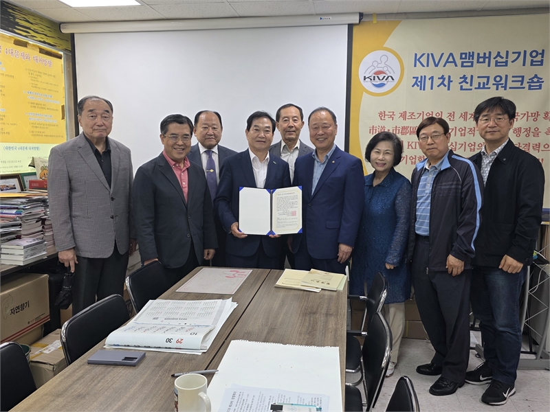 (좌에서 부터) 윤병은 KIVA상임이사, 박동석 한류문화위원장, 이임수 전력기획위원장, 김진우 부의장, 채우석 방산안보위원장, 박승주 중앙회장, 이점자 의례위원장, 오우식 청소년교육위원장, 황준호 도시경관위원장
