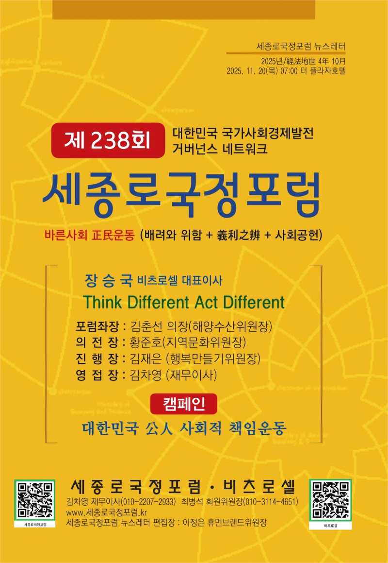 이 엄청난 과제를 가능케 한 베이스캠프는 21년째 접어든 세종로국정포럼입니다. 그간 220여 명의 장·차관이 직접 소관정책을 특강하고 참석자들은 정책건의 하면서 국가사회발전 거버넌스로 활동한 경험을 이제는 세계 각국에 따뜻한 情으로 나눠주고자 합니다.